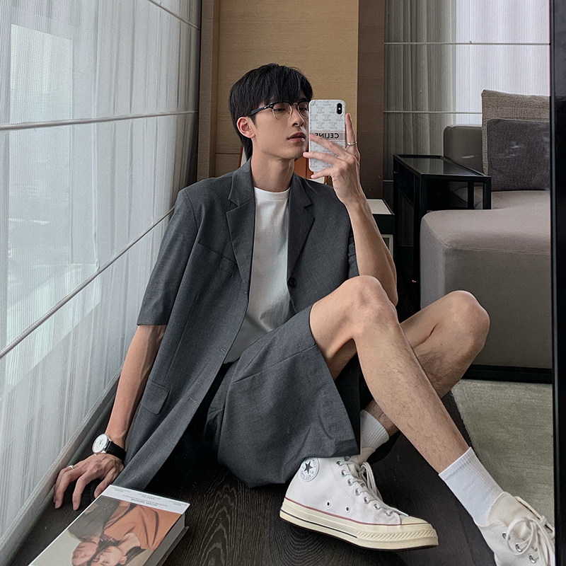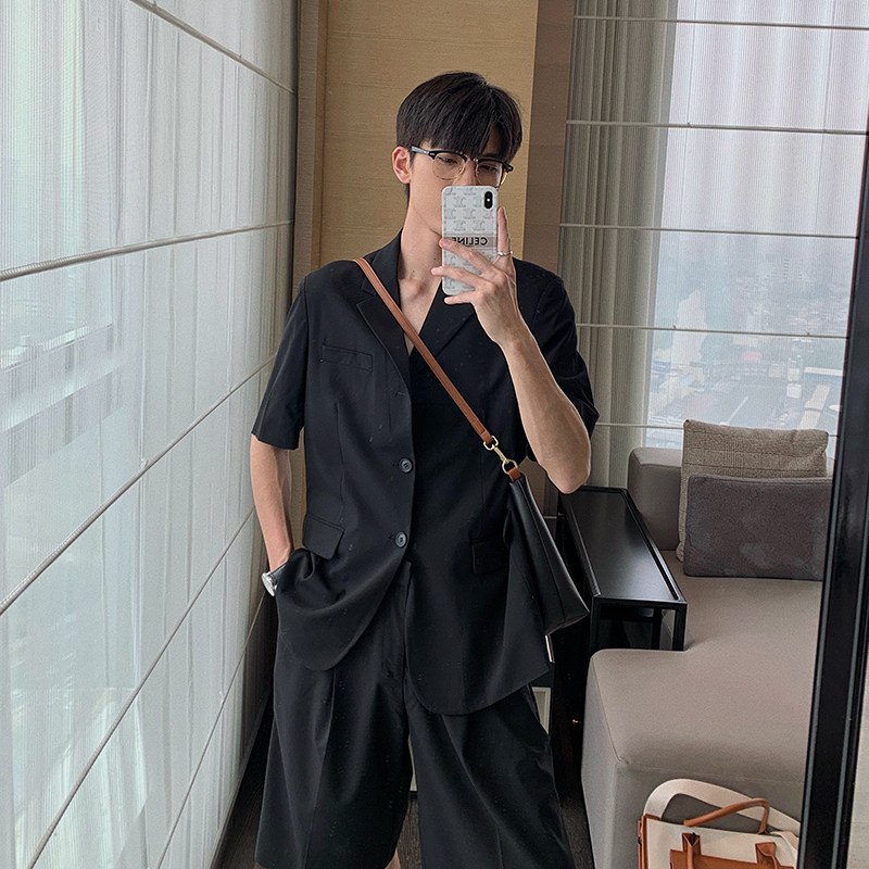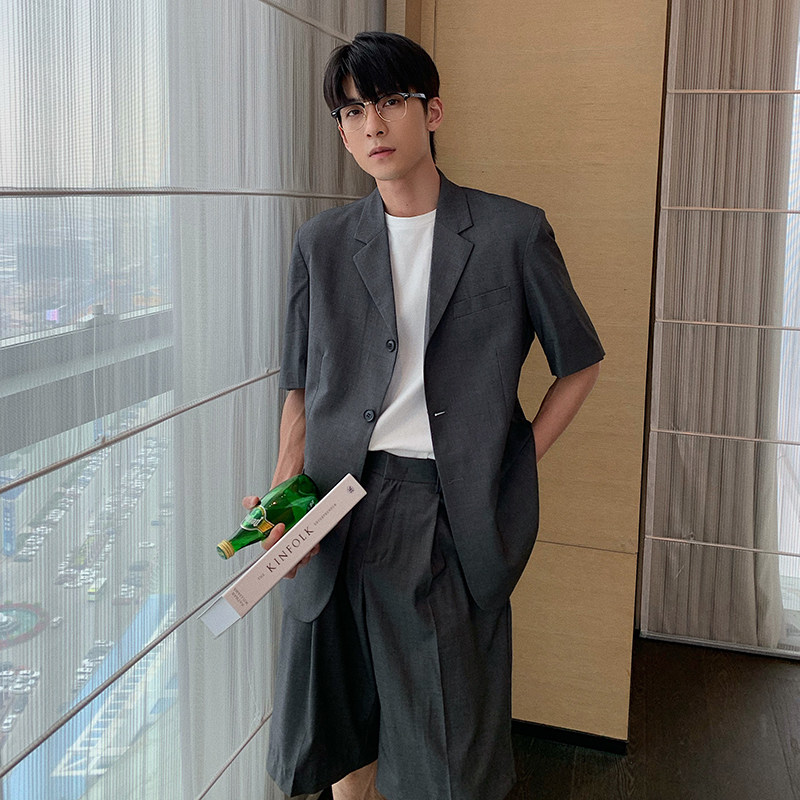 Hualun summer light familiar wind Korean style short-sleeved ruffian handsome suit suit 2021 casual suit jacket men's shorts