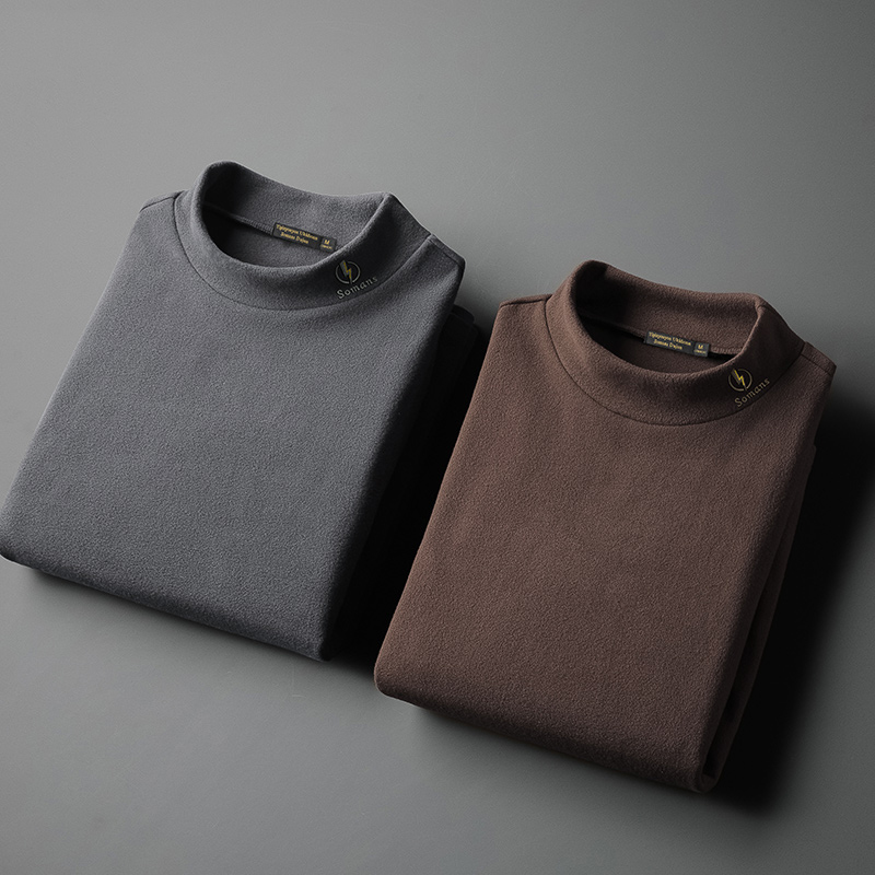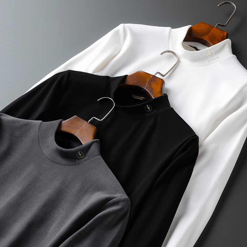 MAROLIO Men's De Velvet Bottom Shirt Men's Slim Long-sleeved Autumn and Winter Thickened Warm Inner Clothes for Men