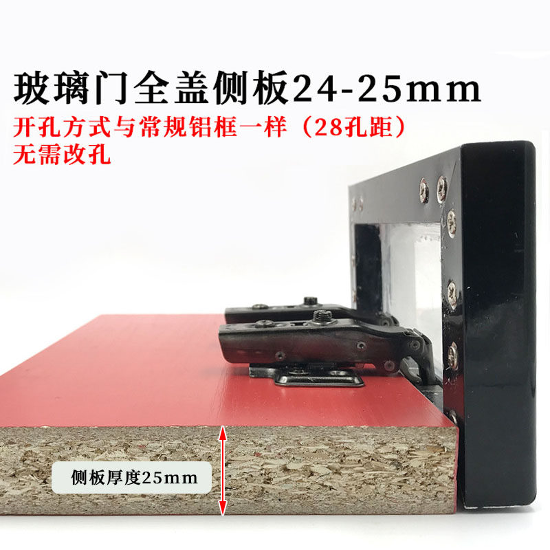 Extremely simple aluminium frame hinge full cover sideboard 25mm aluminium alloy narrow rim glass door frame bookcase damping buffer hinge