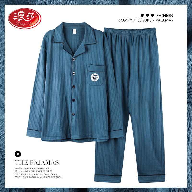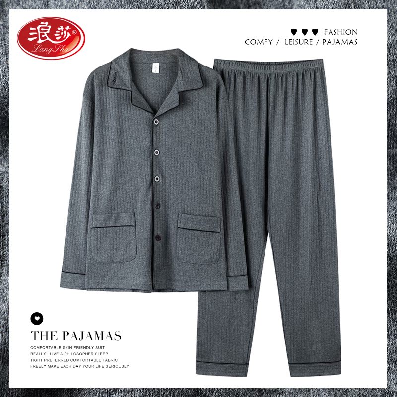 Langsha 2022 new pajamas for men's spring and autumn cotton long-sleeved men's plus size thin section home wear autumn and winter