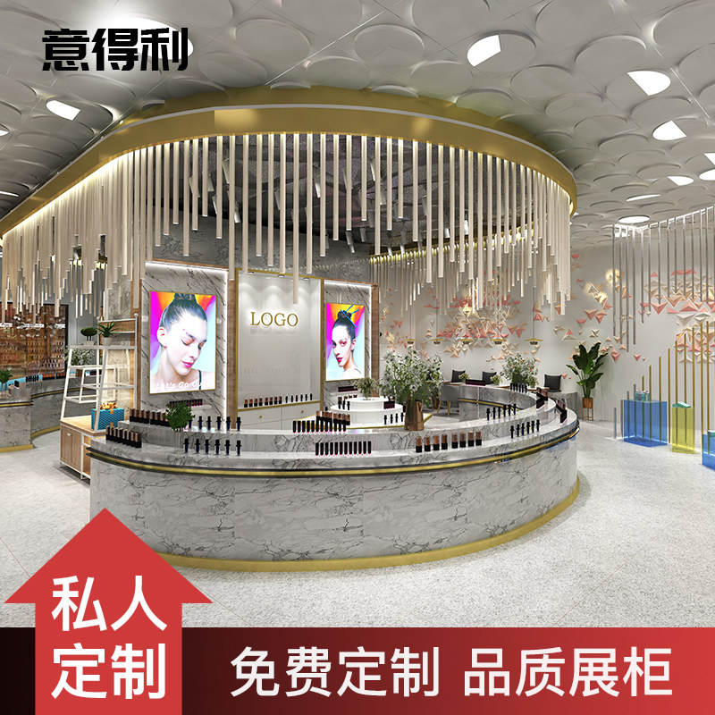 All-store effect design curved display table transparent multi-layer high cabinet multi-layer high cabinet multi-layer high cabinet high cabinet round Zhongdao exhibition counter Logo background wall high cabinet