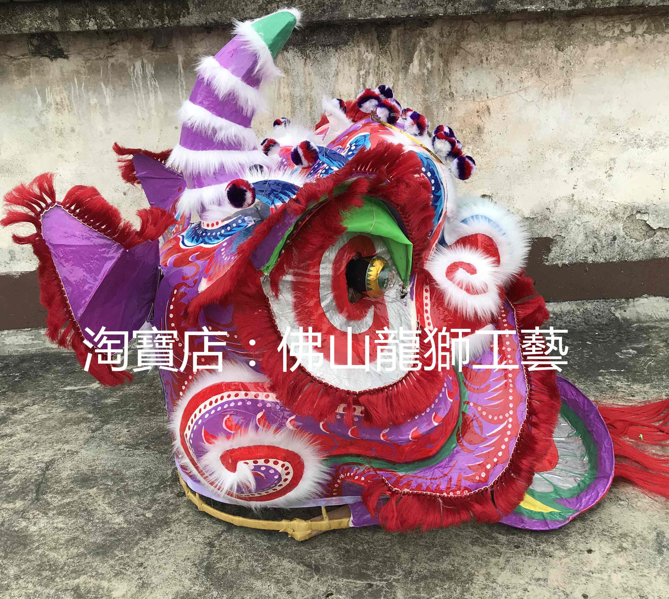 A set of authentic Foshan traditional round gills with purple bottom and red beard Lion) pure handwork) Intangible Cultural Heritage) Lion King's hegemony in the same color