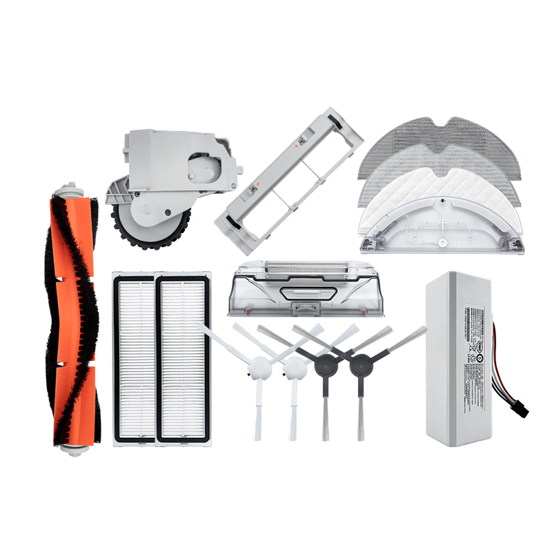 One water tank, 2 filters, buy 4, get 2, send 6 filters, 10 filters, send 4 side brushes, side brushes, 1 pair of side brushes, buy 2, get 1, send 3 pairs of main brushes, one main brush, 2 free, 2 side brushes, round brush