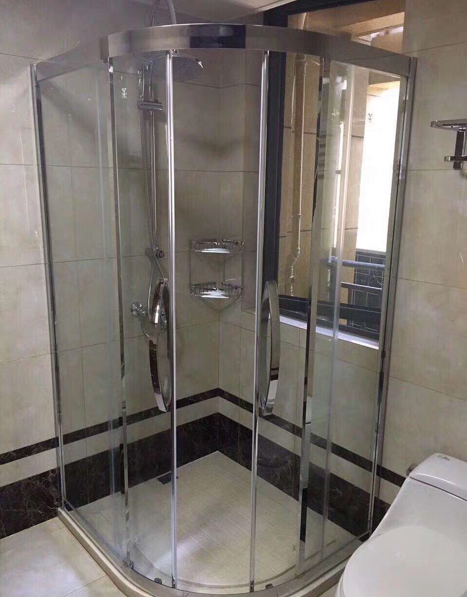 Fan-shaped corner shower room 304 stainless steel thickened non-doped aluminum bath tempered glass dry and wet separation partition