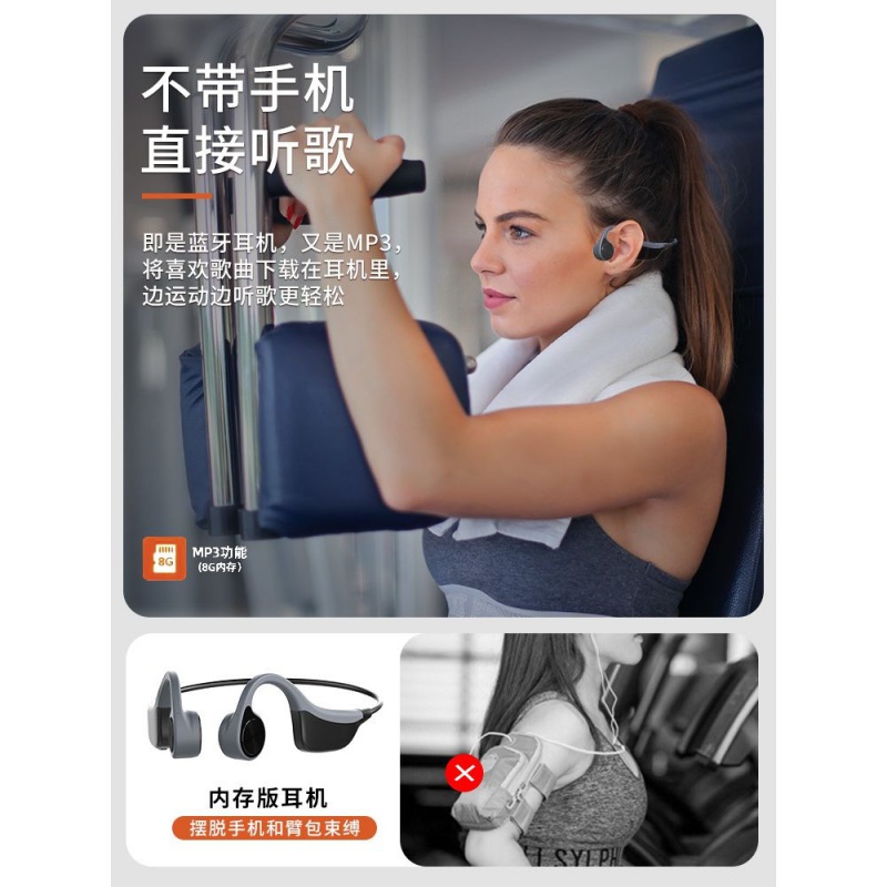 Bone conduction Bluetooth headset comes with 8G memory integrated non-in-ear wireless running bone sensing