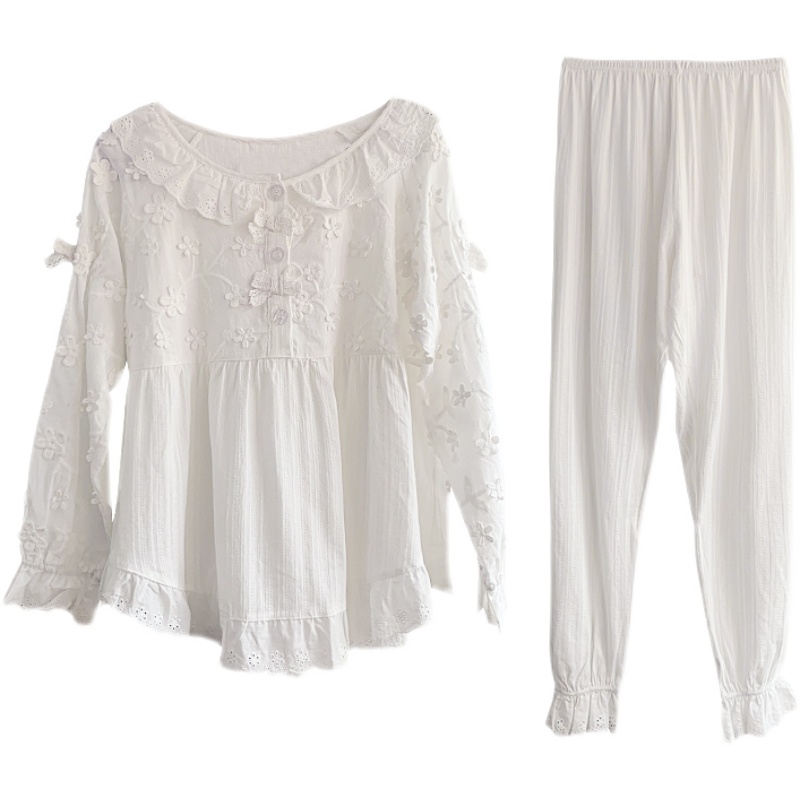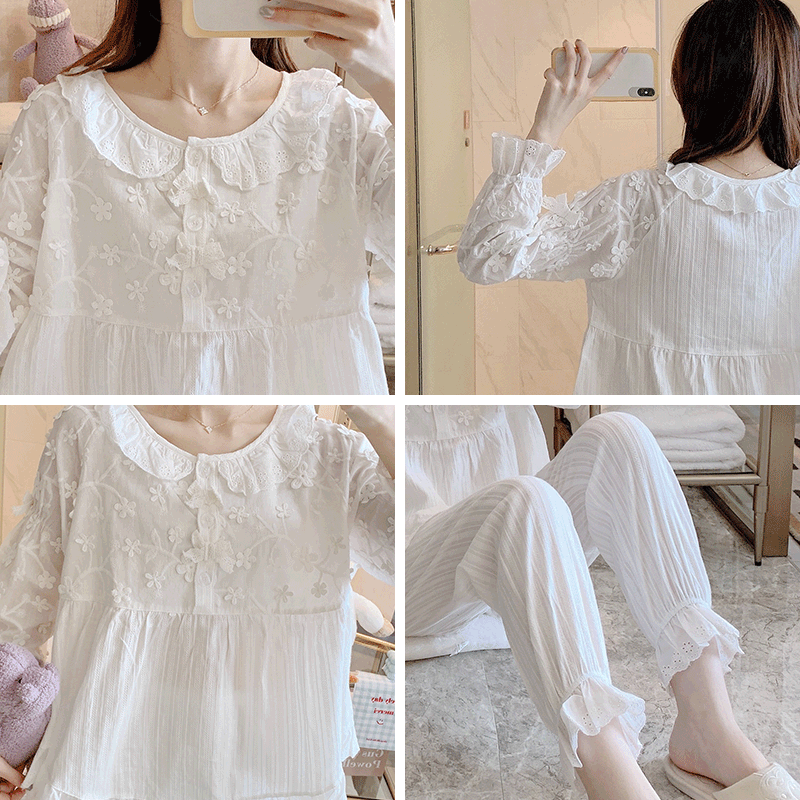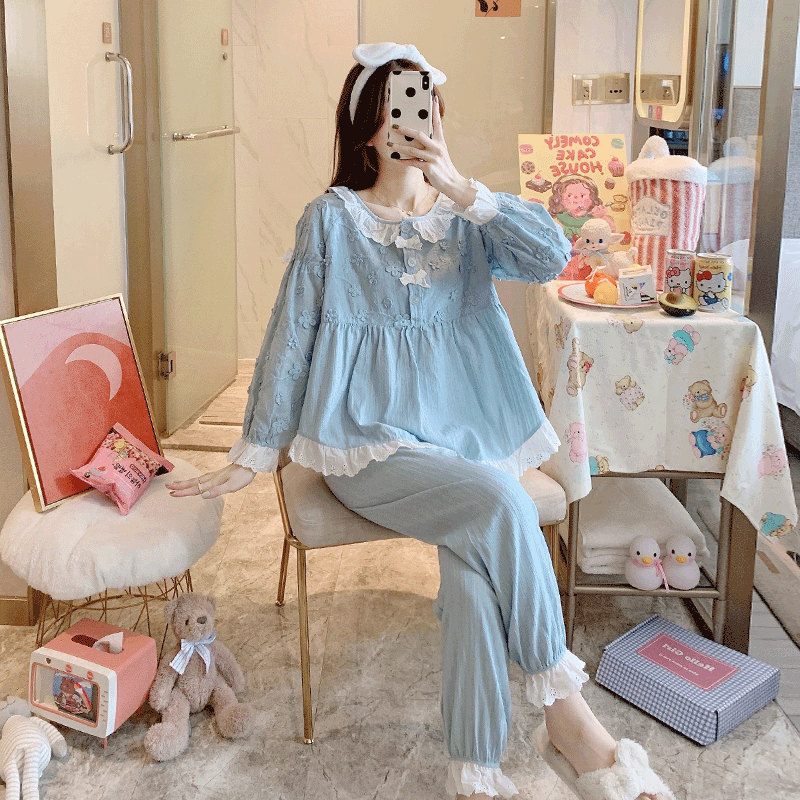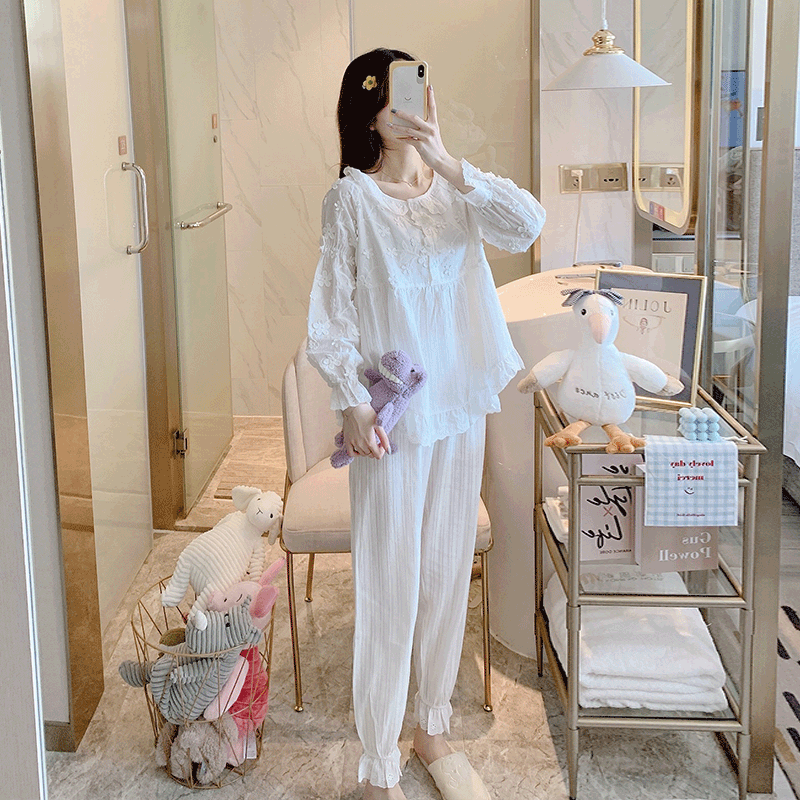 Sleepwear woman 2022 New spring and fall net red popcorn Pure Cotton Cute Palace Wind Autumn Long Sleeve Summer Home Dress