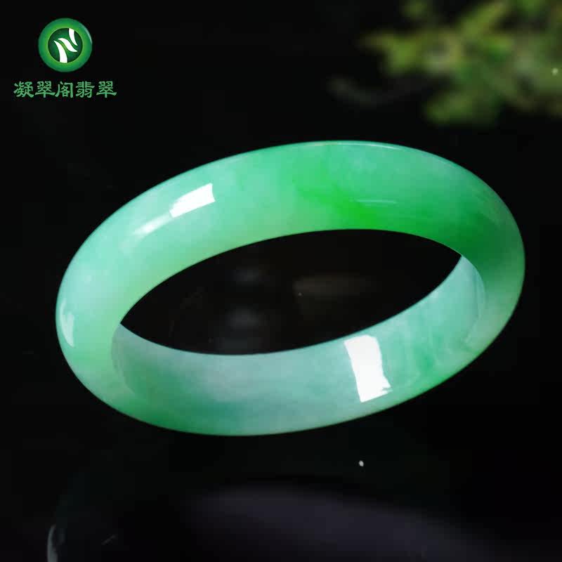 Ningcuige Jadeite Natural Burmese Floating Flower Ice Oil Green Jade Bracelet Jade Bracelet with Certificate Live Appraisal - Taobao