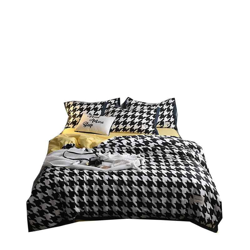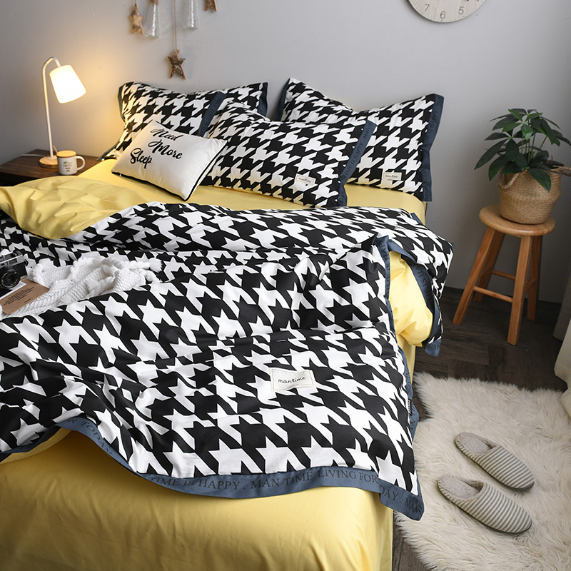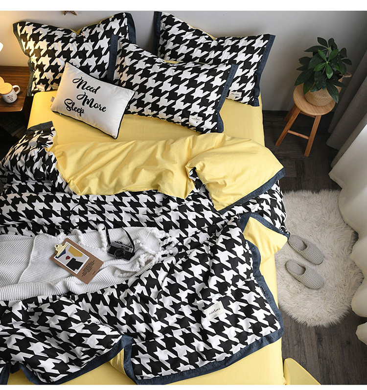 MVF Nordic Simple Houndstooth Four-piece Cotton 1 5m1 8 Sheet Fitted Quilt Cover Three-piece Student Set