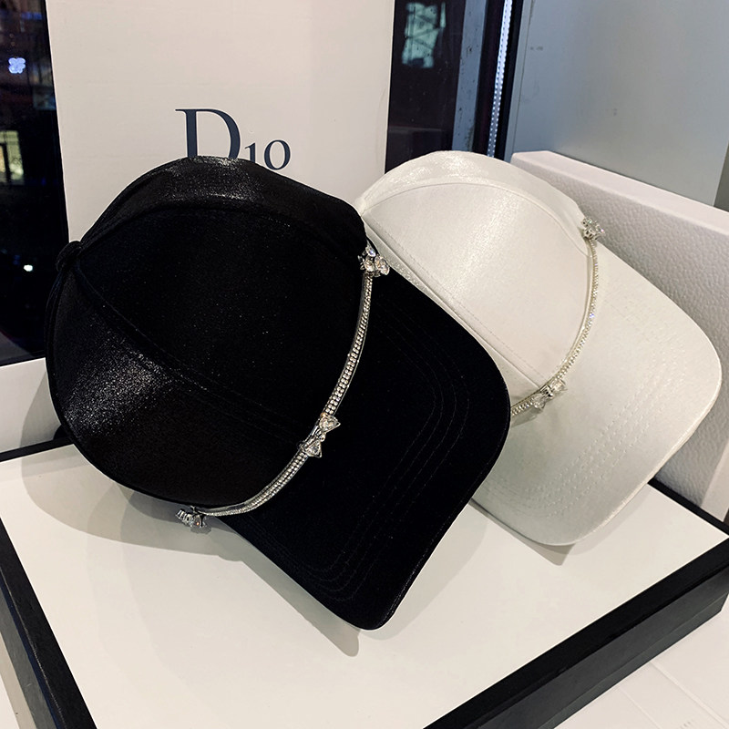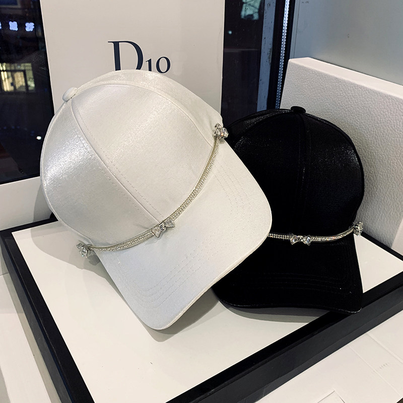 Tide brand hat female spring and summer mercerized rhinestone simple baseball cap thin section sunscreen cap Korean version sunshade sunshade hat