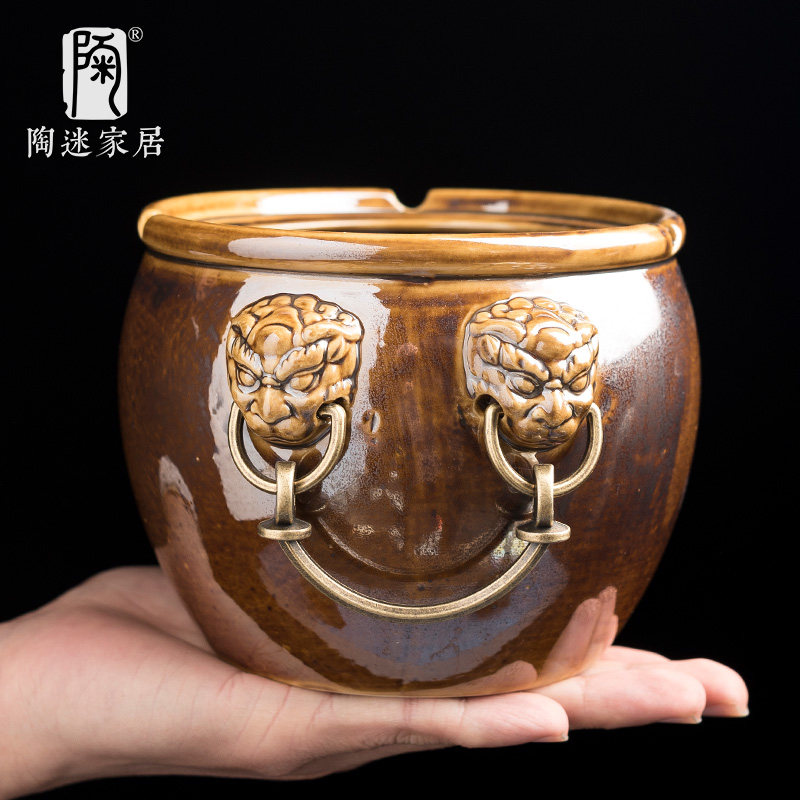 Pottery fans zhao cai forbidden city cylinder cornucopia ashtray home living room car ceramic personality ornament creative smoke cylinder