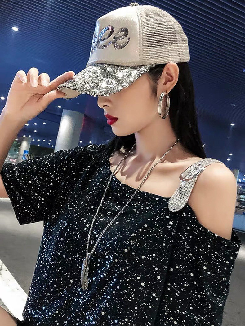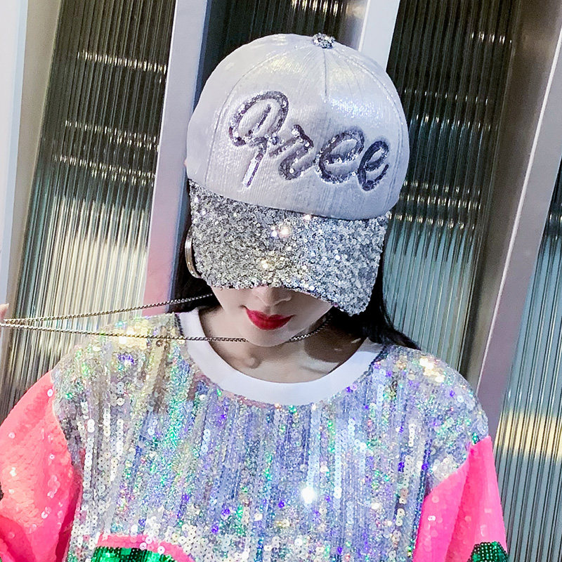 Tide brand hat women Korean version tide spring and summer all-match sequined cap female hip-hop hat mesh hat sun hat summer baseball cap