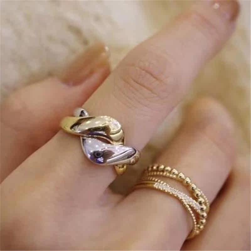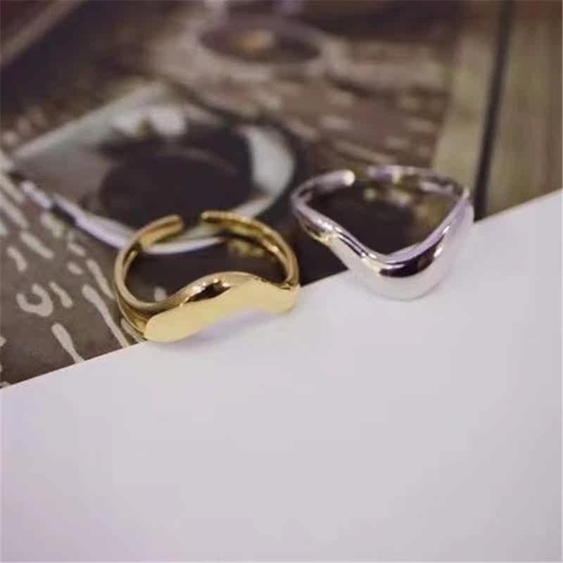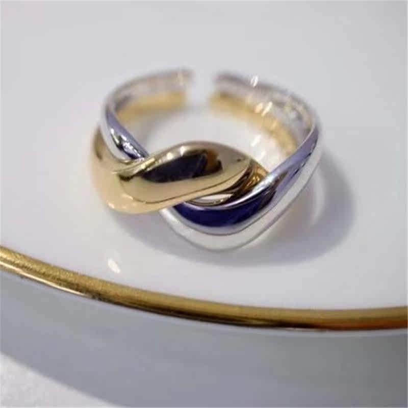 Two-in-one color color bicolor thick gold 18K gold white gold platinum ring personality tide high face INS wind single product stack
