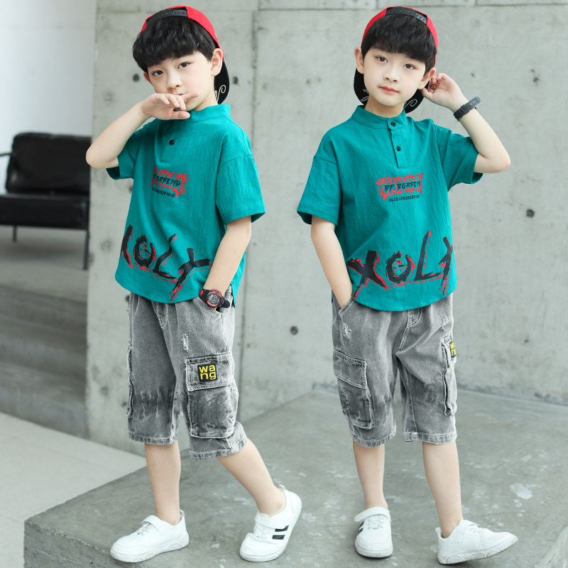 Korean children's clothing boys' summer suits 2022 new handsome middle-aged children's summer short-sleeved Western style Korean version two-piece suit