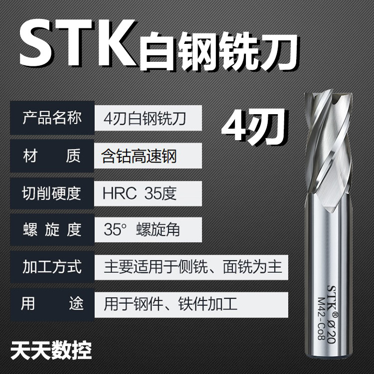 STK white steel 4-edge milling cutter M42 high speed mesh high cobalt plus hard milling cutter 1 5mm-25 0mm