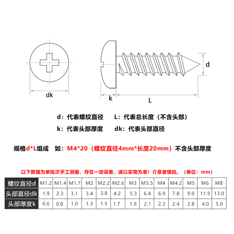 304 stainless steel round head cross self tapping screw disc head wood pointed tail self tapping screw screw M1M2M3