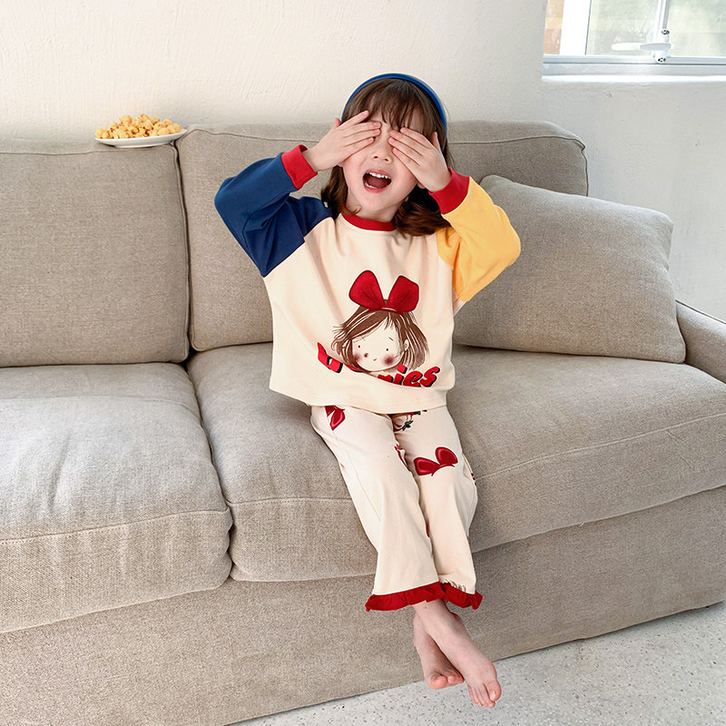 Girls spring and autumn cotton pajamas Little girl cute cartoon long sleeve two-piece set of large children's cotton children's home clothes