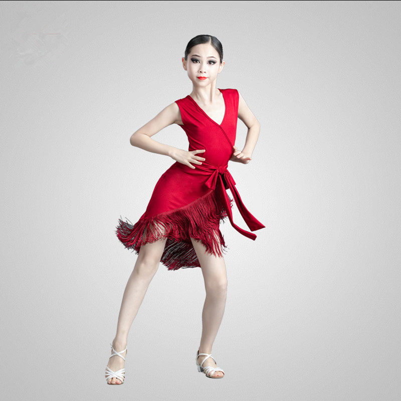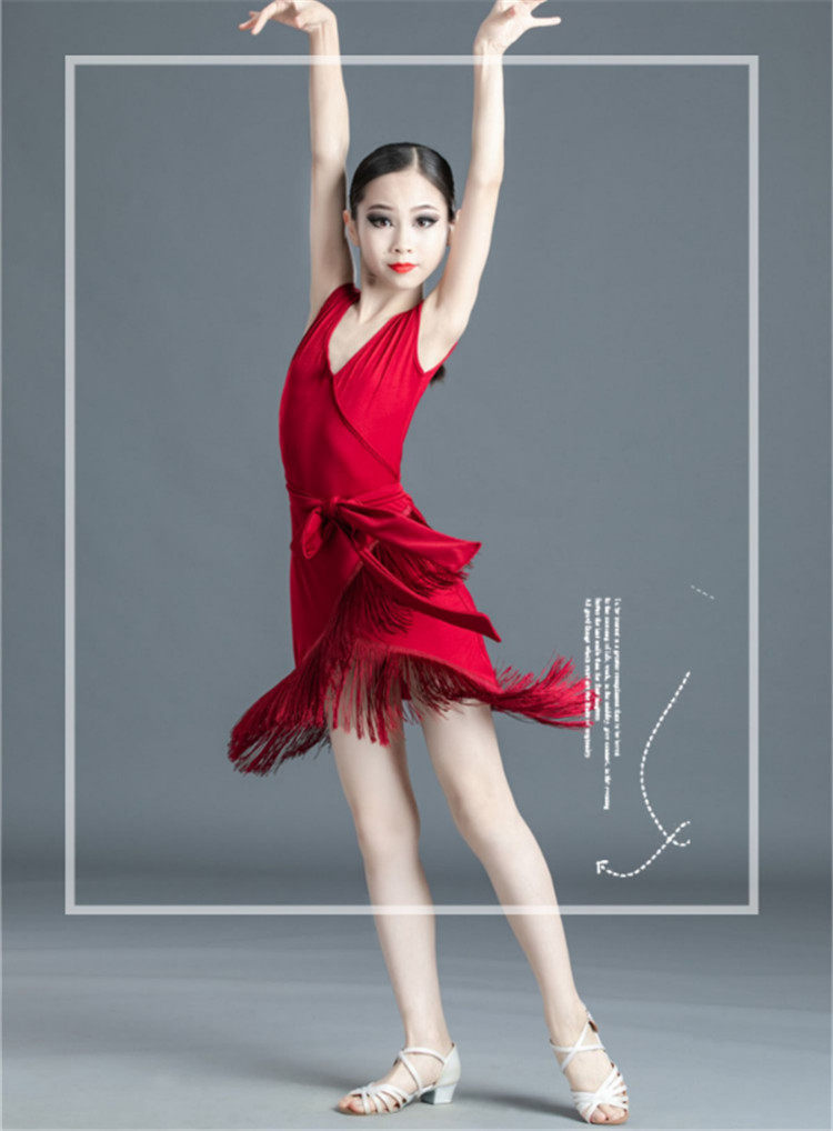 Spring Summer New Children Latin Dance Girl Sleeveless Sleeveless Dancing Skirt Toddler Professional Practice to Dress Foreign Dress