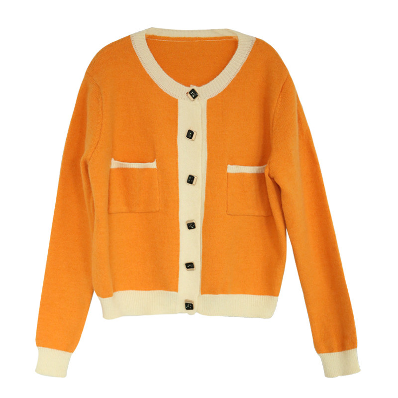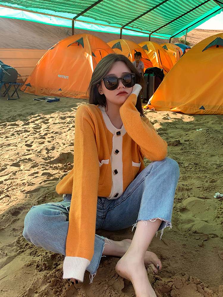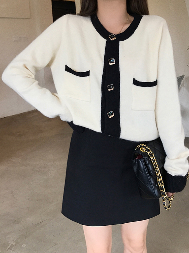 grid studio Japanese small fragrant wind knitted jacket female spring and autumn sweet fresh Joker short sweater cardigan