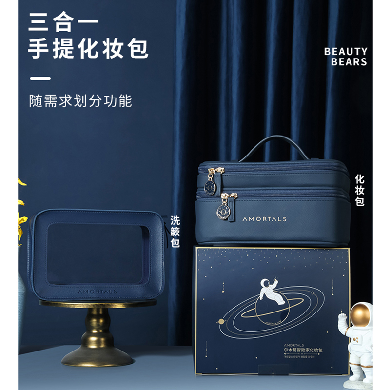 Ill Wood Risers Make-up Bag Containing Bag Wash Bag Advanced Senses Travel Carry-on Portable Super-Fire Large Capacity Woman