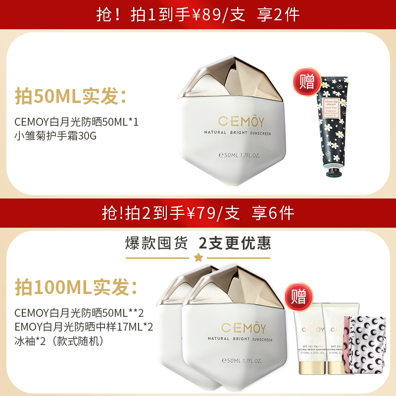 Australia CEMOY white moon light sunscreen waterproof anti-perspiration anti-UV facial face light and thin isolation milk SPF50