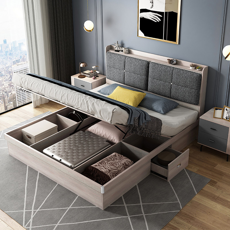 Nordic double bed wardrobe combination set a simple modern home master bedroom furniture set complete wedding room