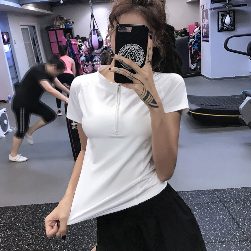 Sports top women's summer new half zipper short-sleeved slim fit slim mesh beautiful back quick-drying gym yoga clothes