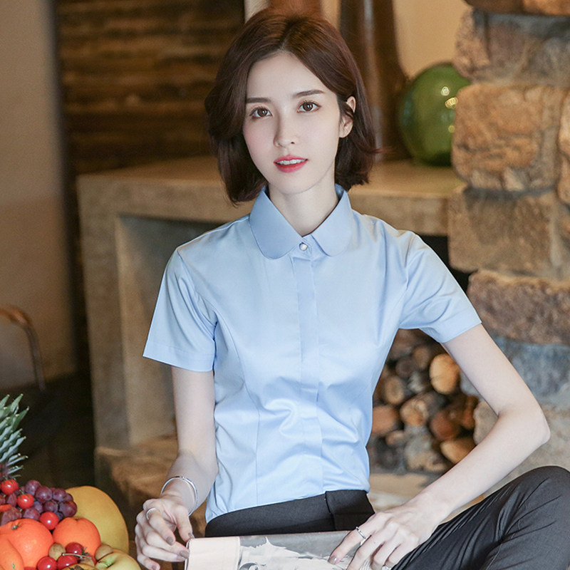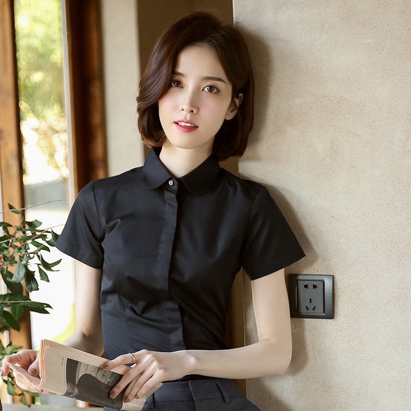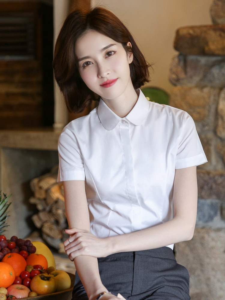 European station short-sleeved white shirt female design sense niche work clothes 2021 summer overalls temperament tops