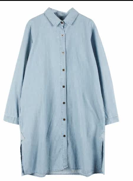 Pregnant women's shirt skirt spring and autumn loose Korean version of the mid-length tide mother breastfeeding skirt autumn fashion denim cotton shirt top