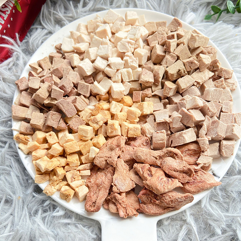 Chicken liver 80g chicken heart 80g duck meat 80g duck liver 80g cod fish 70g salmon 70g chicken 80g
