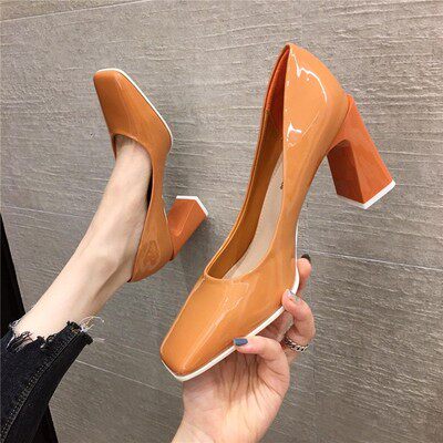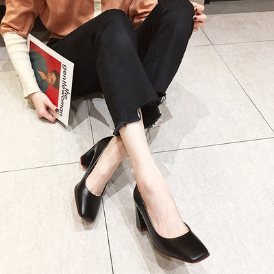 Heavy recommendation ~ temperament commuter high heels female all-match girl square toe shoes net red French thick heel shoes black