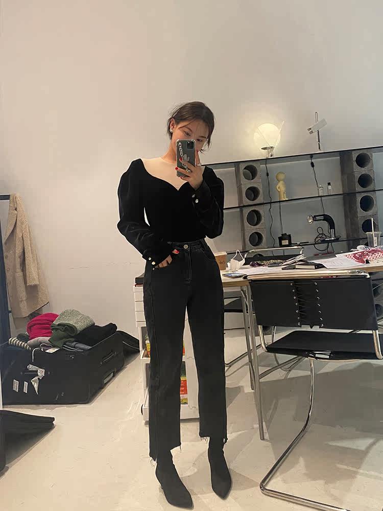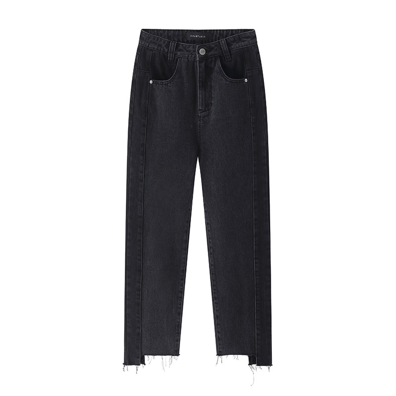 wxlstudio good-looking and charming charcoal black jeans women's high waist 2022 spring and autumn new straight pants