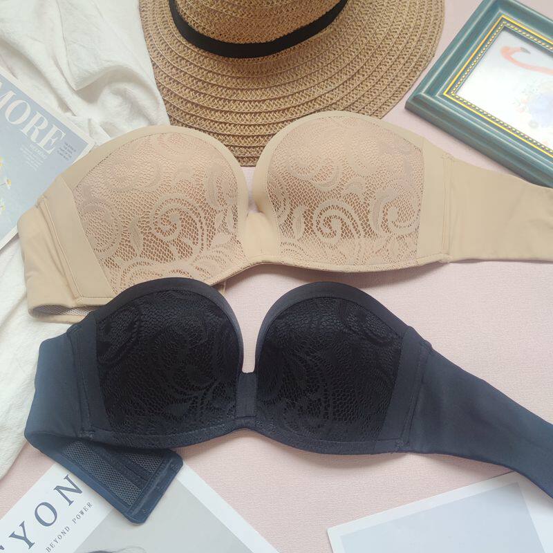 European and American brands Invisible bra half cup 1 2 cups of smear without shoulder strap non-slip underwear ultra slim fit Grace