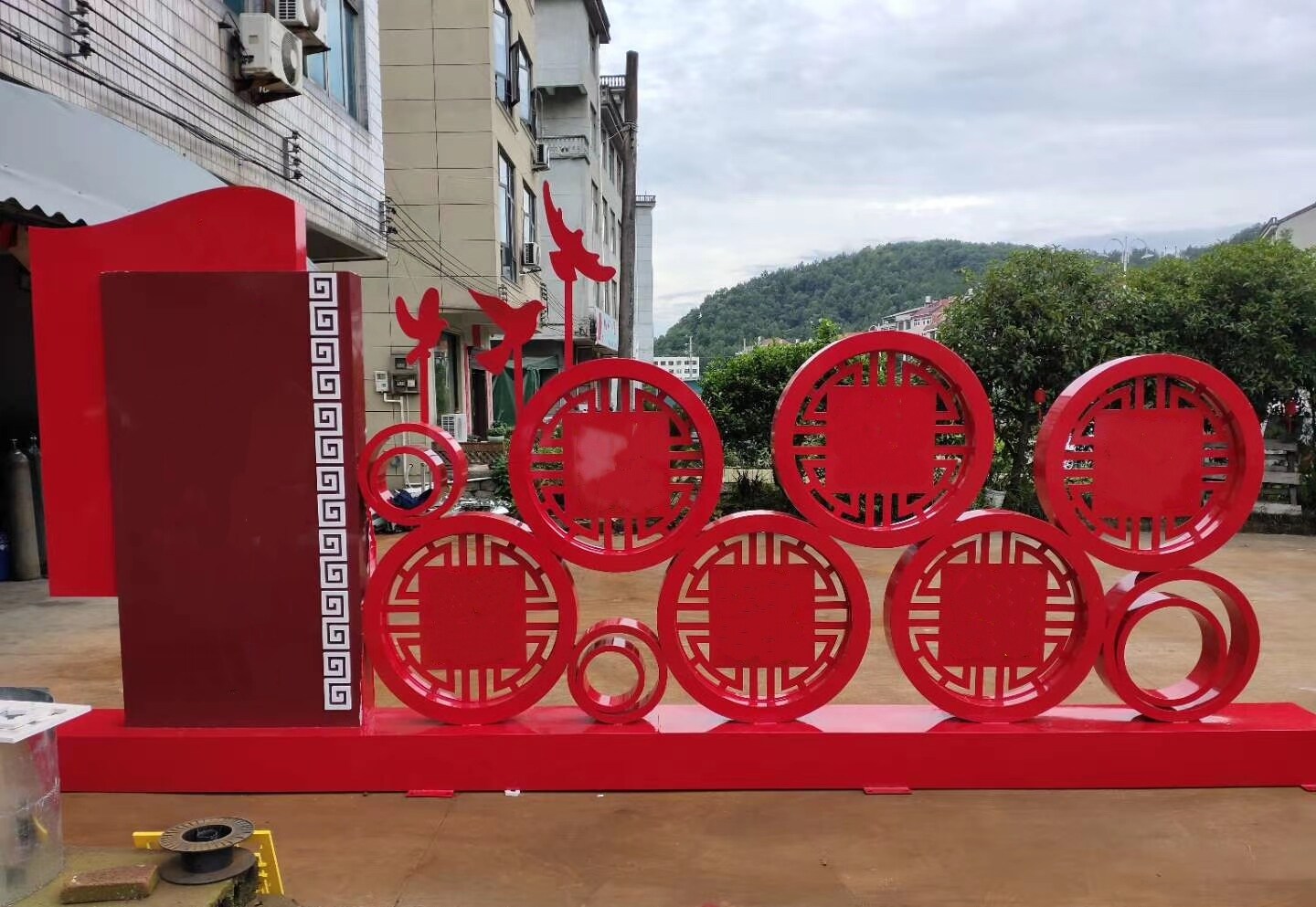 Outdoor billboard bulletin board large wrought iron paint landscape sculpture billboard stainless steel billboard