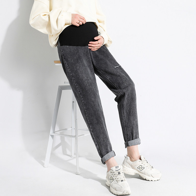 Pregnant woman jeans Spring paragraph Conspiculess Nine-short Sub Loose large size Broken Hole Spring Summer Little Sub Pregnant Woman Pants Spring Dress