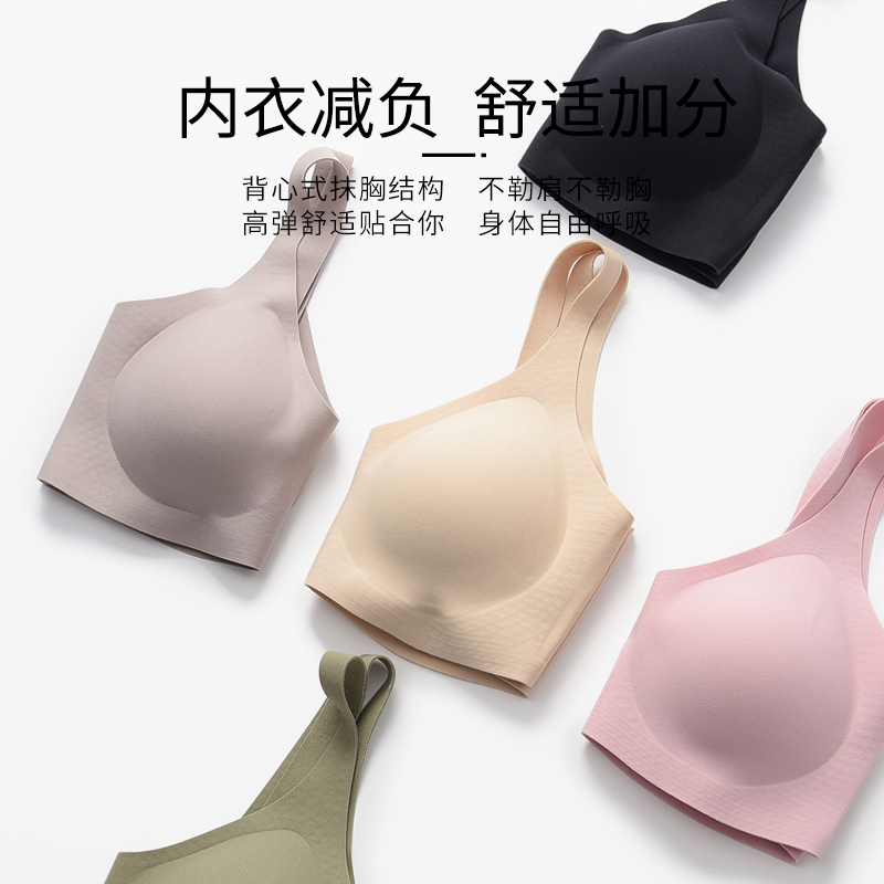 Underwear women's size-free thin large breasts show small sports beauty vest type markless no steel rim gathering bra summer