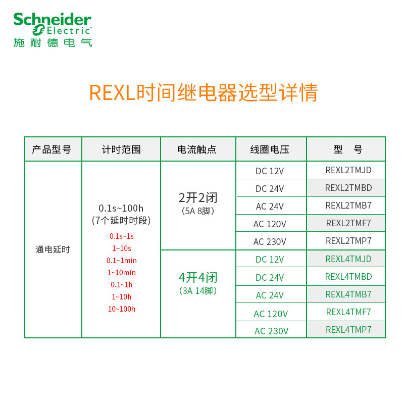 Schneider time-lapse REXL2TMP7 REXL2TMP7 REXL2TMBD REXL2TMBD REXL4TMBD REXL4TMBD 230V