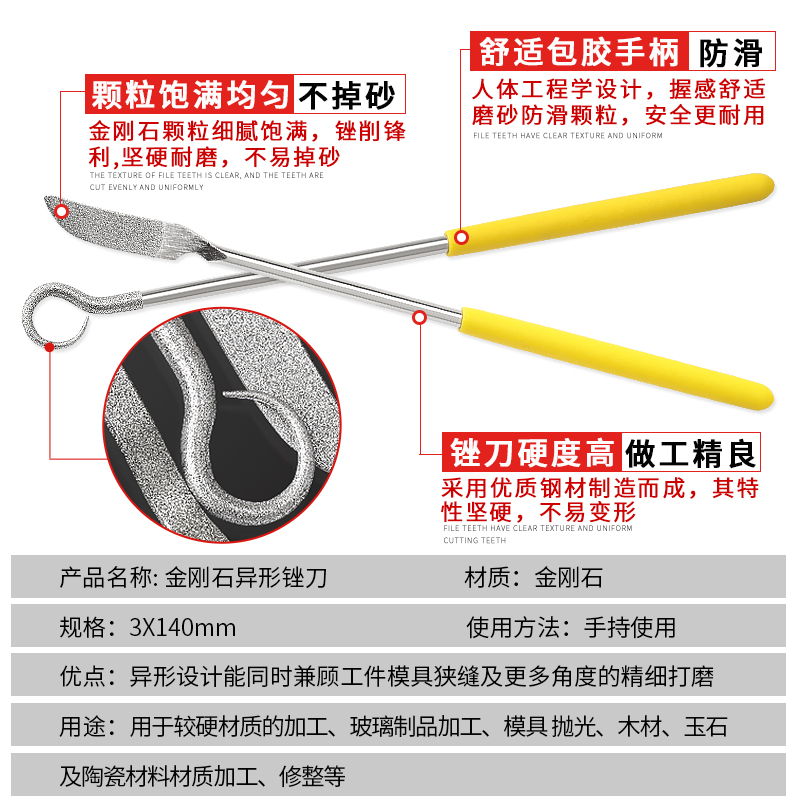 Profiled filing knife diamond rubbing knife fine sand curved flat flat round ring arched triangular hook Elbow Knife Type BROCADE Brocade Frustration