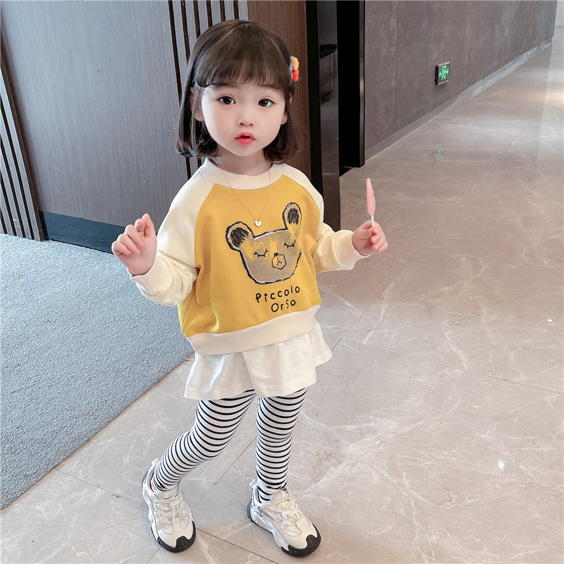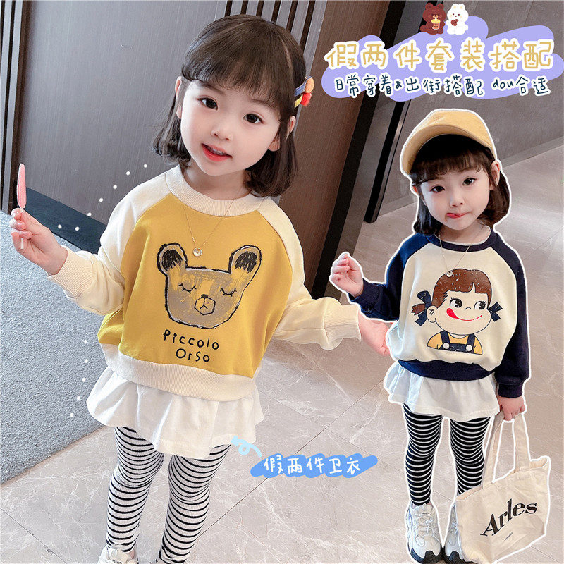 Girl Spring Clothing Suit 2022 New Internet Red Children Suit Women's Baby Foreign Pie Spring Autumn Season Wei Pants Thick Cotton T Two sets