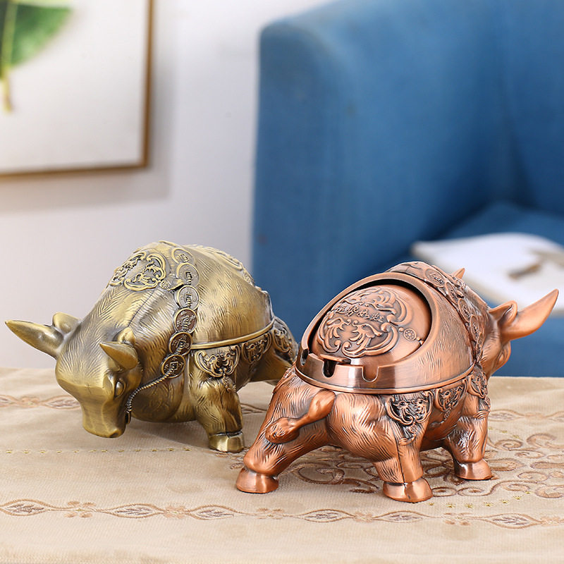 Chinese personality with lid ashtray everyone with tea decoration trend wind-proof mounting trend such as iron bull air-flush