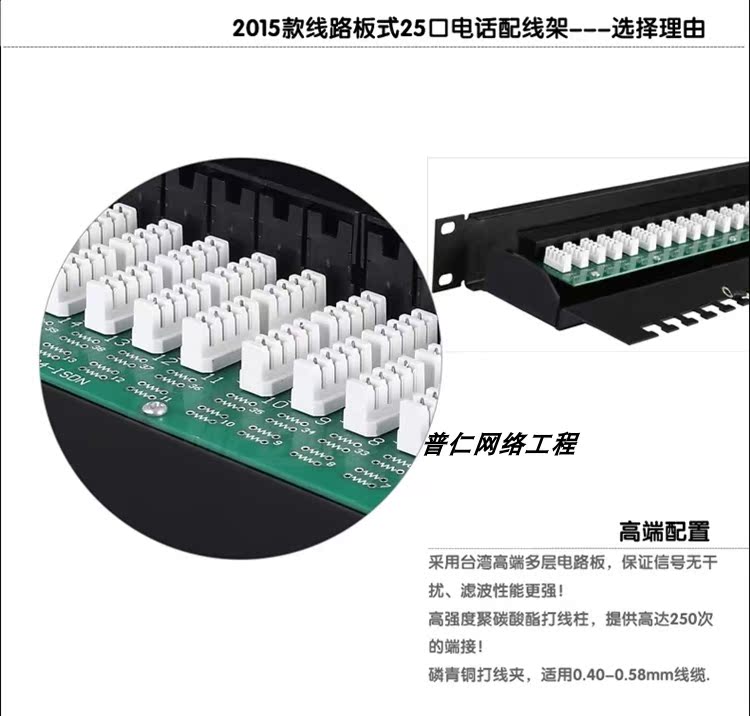 Lightning protection 25-port telephone wiring frame wiring frame circuit board type network telephone voice wiring frame 25-speed jumper frame