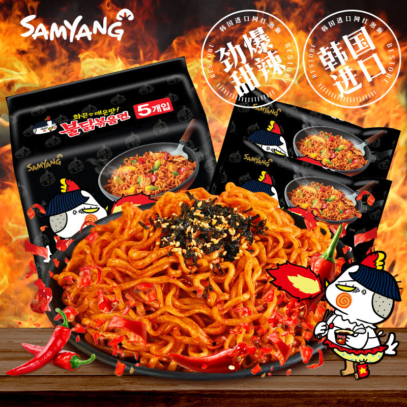 Han Style Three Raised Turkey Noodles South Korea Bubble Face Super Spicy Permalink Cheese Cream Taste Fried Sauce Mixed Pasta