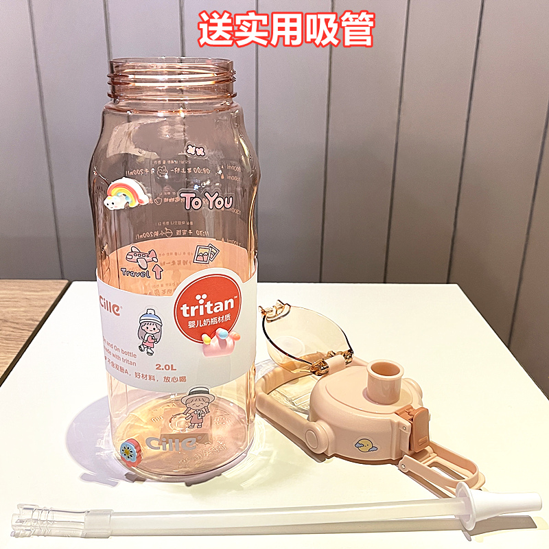 Hile Student Sport Kettle Male Lady Travel Water Glass Minima Large-capacity On-board Cup With Straw Space Cup