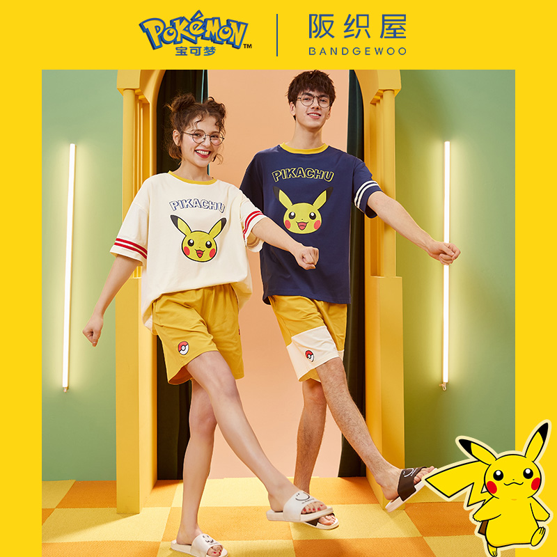 Pikachu women-goose yellow Pikachu men-smoke blue striped Pikachu women-Xiangri Yellow striped Pikachu men-hidden blue IP joint official authorized mall counter official