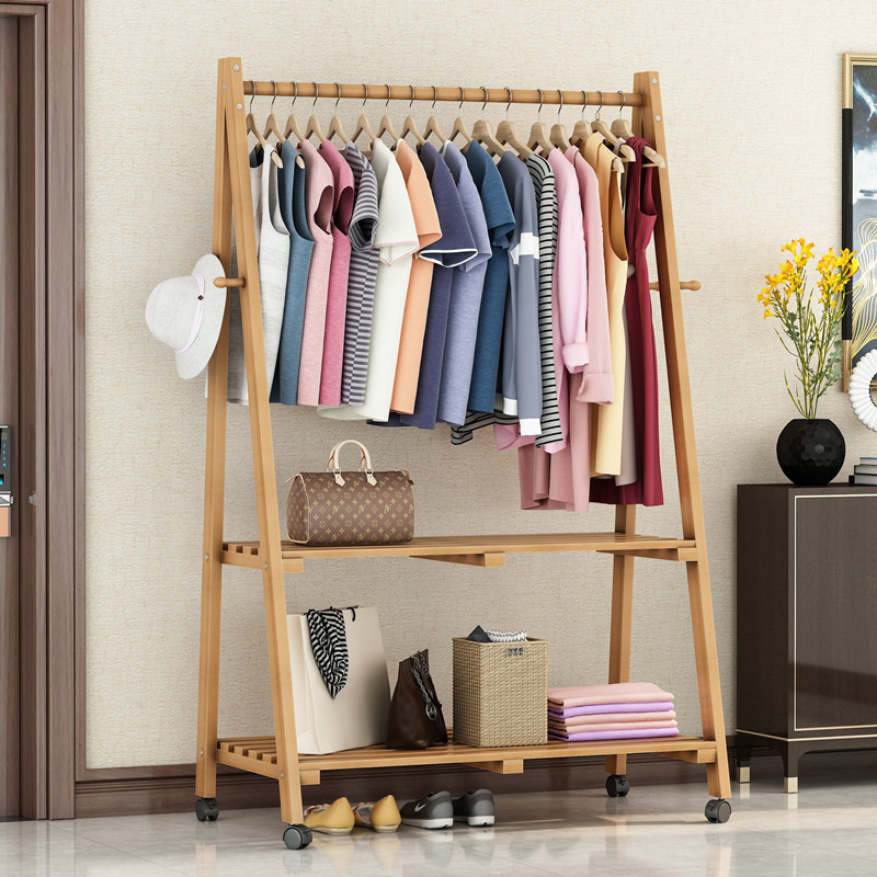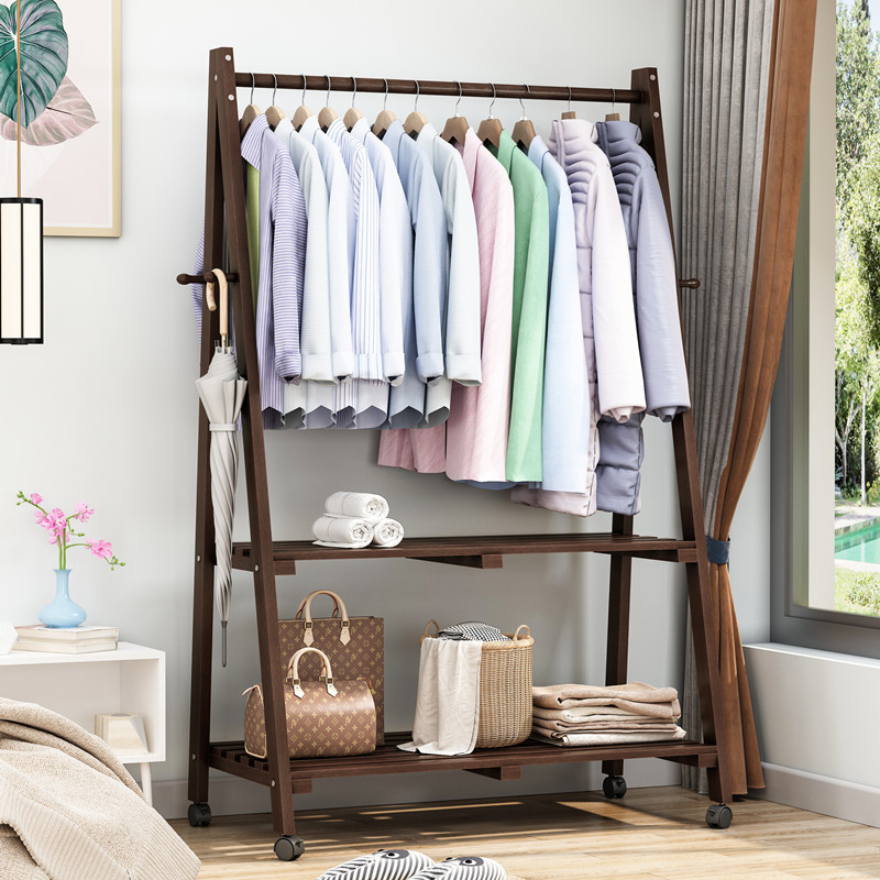 Solid wood clothes hanger floor bedroom coat rack simple hanger rack clothes rack drying rack living room home mobile simple