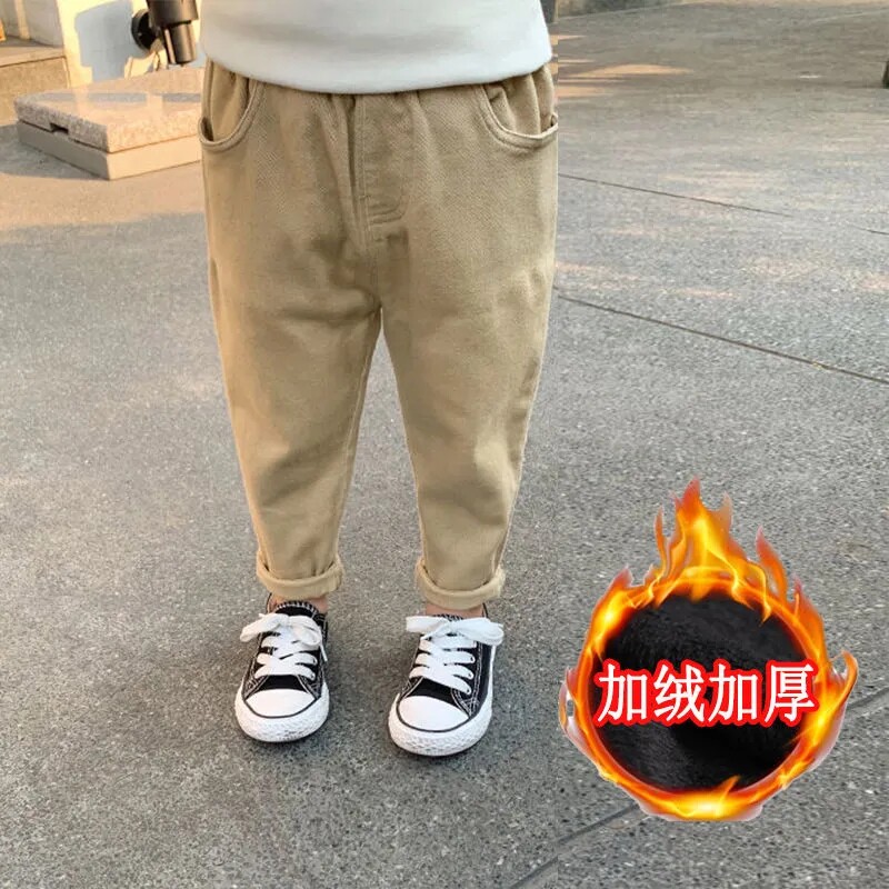 White khaki black khaki cotton trousers plus velvet thickened black cotton trousers plus velvet thickened