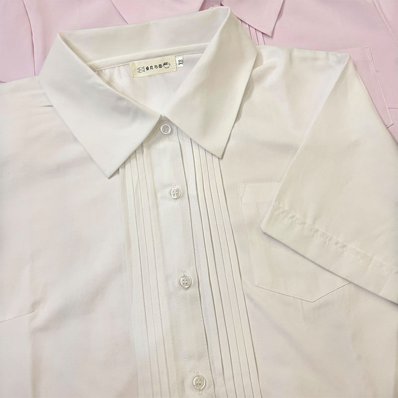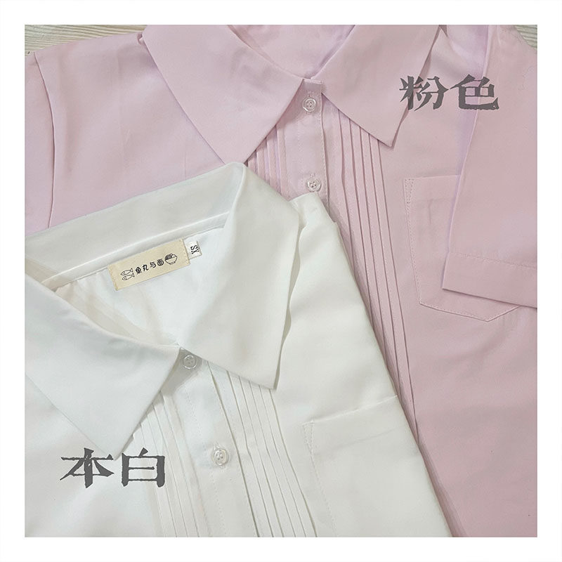 Fish balls and noodles) jk uniform short-sleeved accordion pleats powder white shirt Japanese college style top basic short section