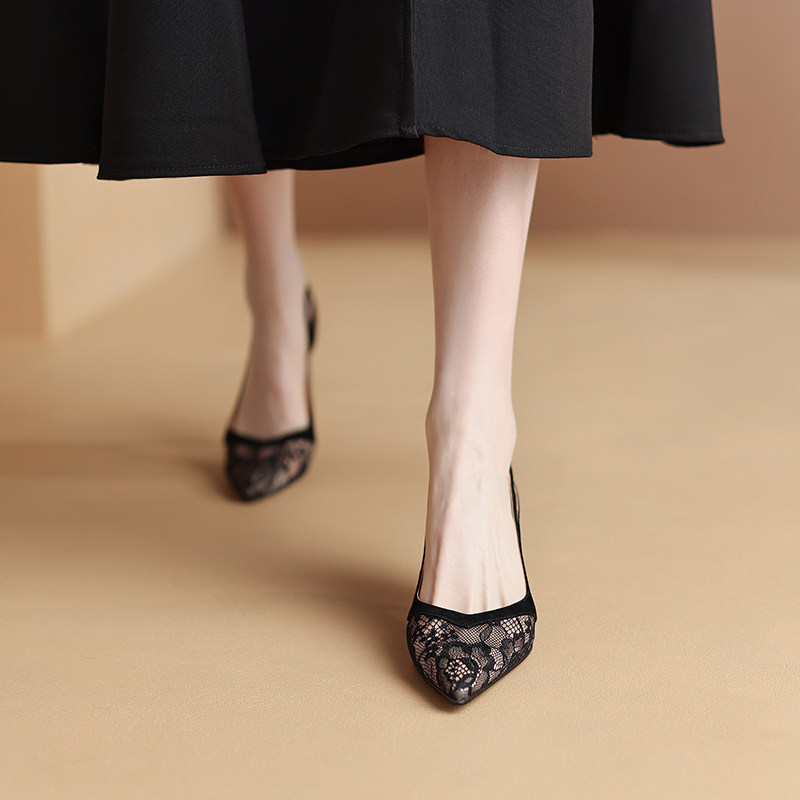 Givenivan high-value beauty ~ French ladies stiletto lace high-heeled shoes women's shallow mouth pointed shoes 6 5