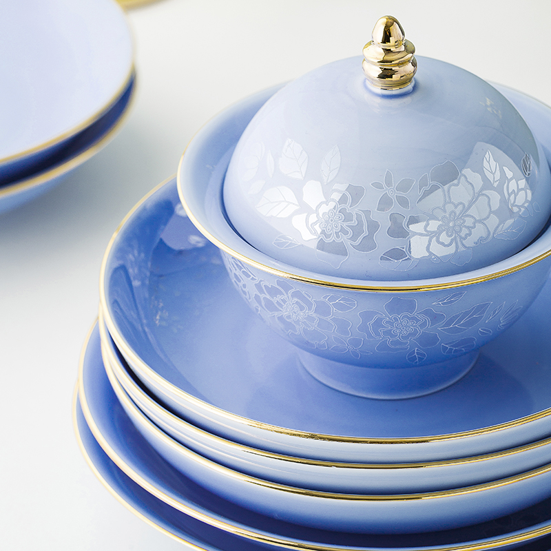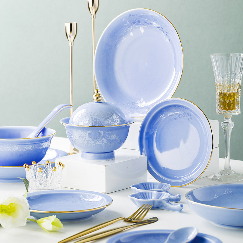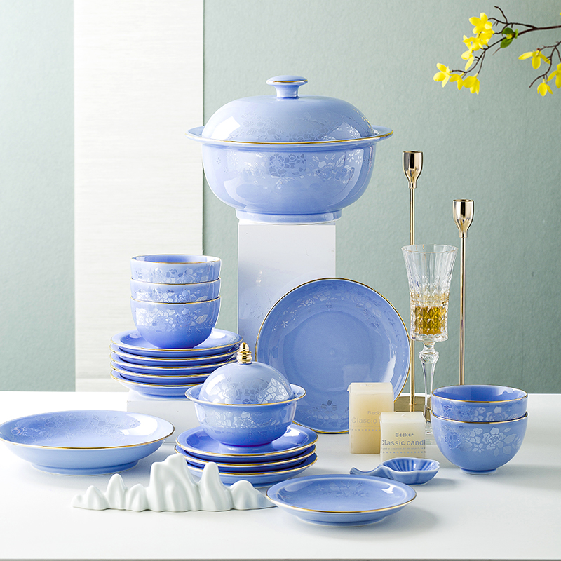 Dishes set meal set bowl plate home purple Chinese simple porcelain bowl Jingdezhen ceramic combination tableware