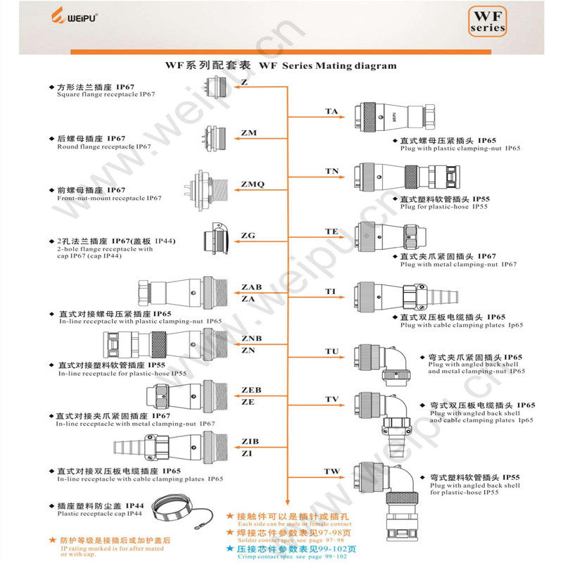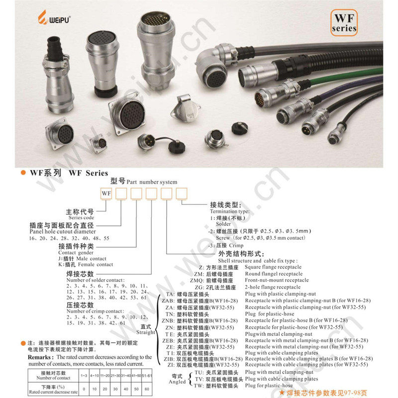 WF20 2-pin TE plug Z square socket WF20 3-pin TE plug Z square socket WF20 4-pin TE plug Z square socket WF20 5