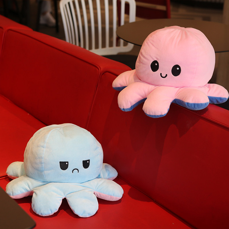 A pink transfer deep blue octopus doll A light blue turn pink octopus doll